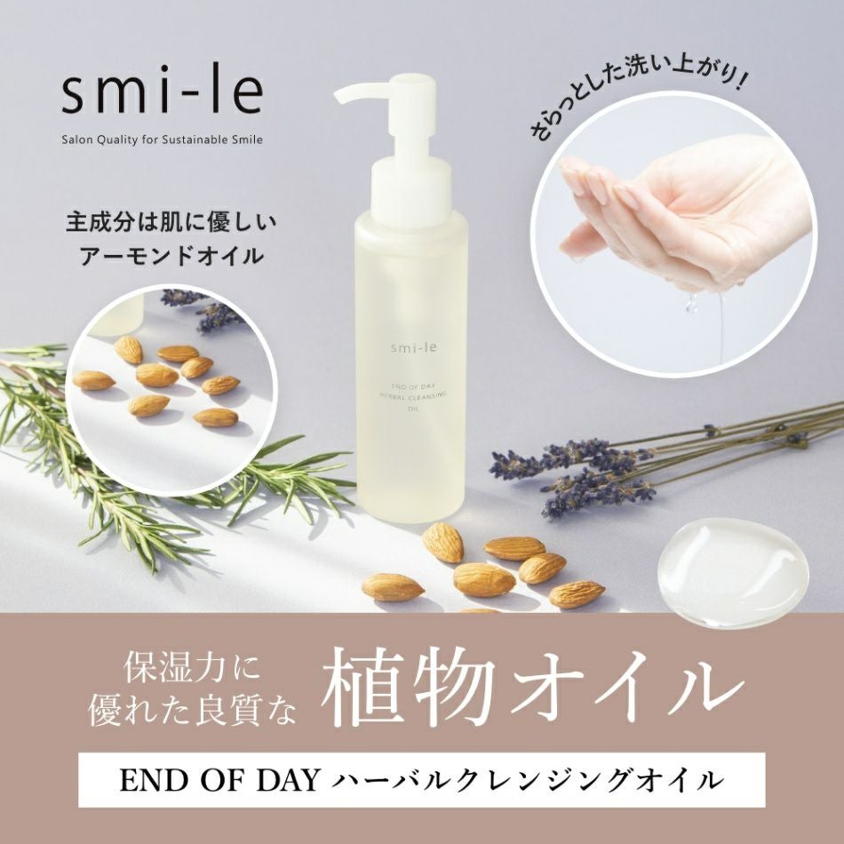 他の画像を見る 定期販売 【送料無料】[クレンジング] smi-le END OF DAY ハーバルクレンジングオイル 100ml 1回あたり ¥ 2,300 税込 肌に摩擦の力を加えずに、優しく汚れを落とす乳化タイプのクレンジング 詳細を見る お気に入りに登録する