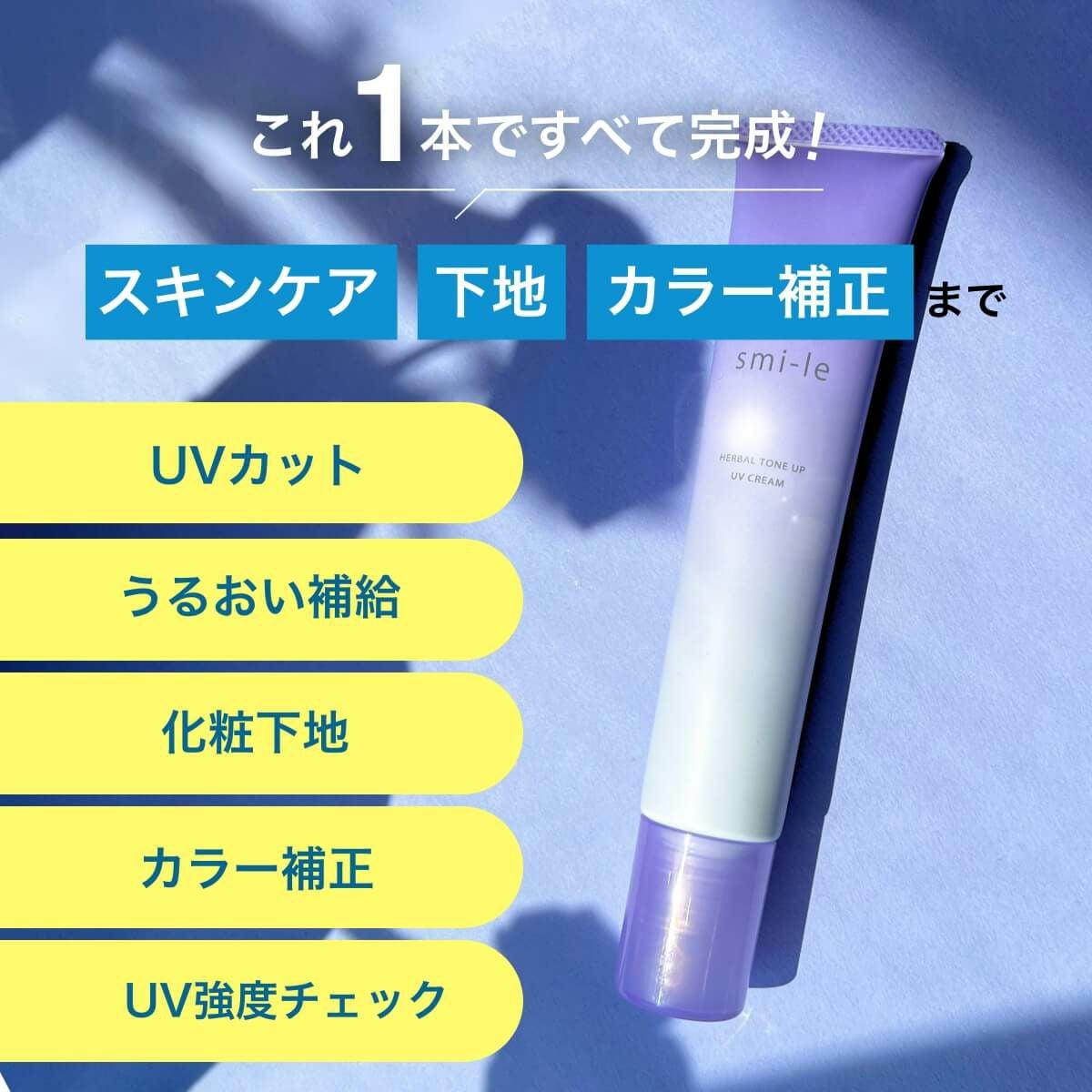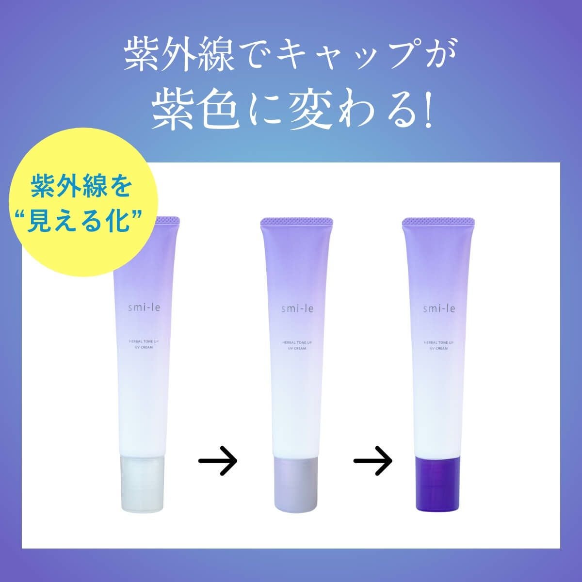 他の画像を見る [日焼け止め] smi-le ハーバルトーンアップUVクリーム 45g ¥ 3,200 税込 この1本で紫外線チェックまで完了! 紫外線カットはもちろん、自然なトーンアップと潤いに満ちたツヤのある透明美肌を叶える、多機能日焼け止めクリーム 5.00 カートに入れる お気に入りに登録する