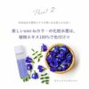 美しいスミレカラーの化粧水層は、植物エキス100%で色付けしています。(チョウマメ花エキス)